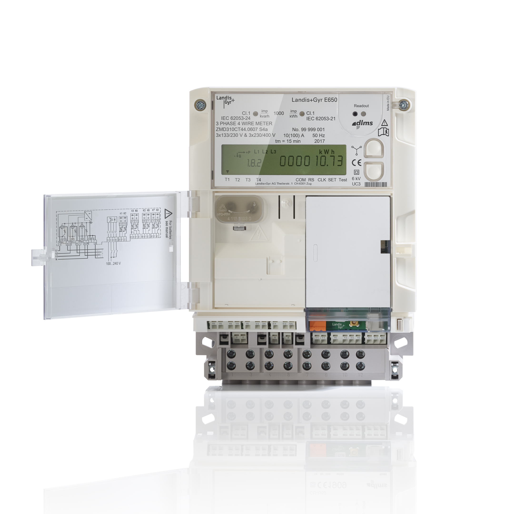 An optimal data flow is achieved through the integrated communication interface or via the Plug-&-Play Landis+Gyr E65C communication modules.